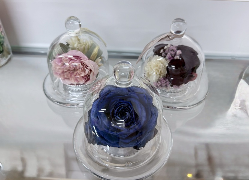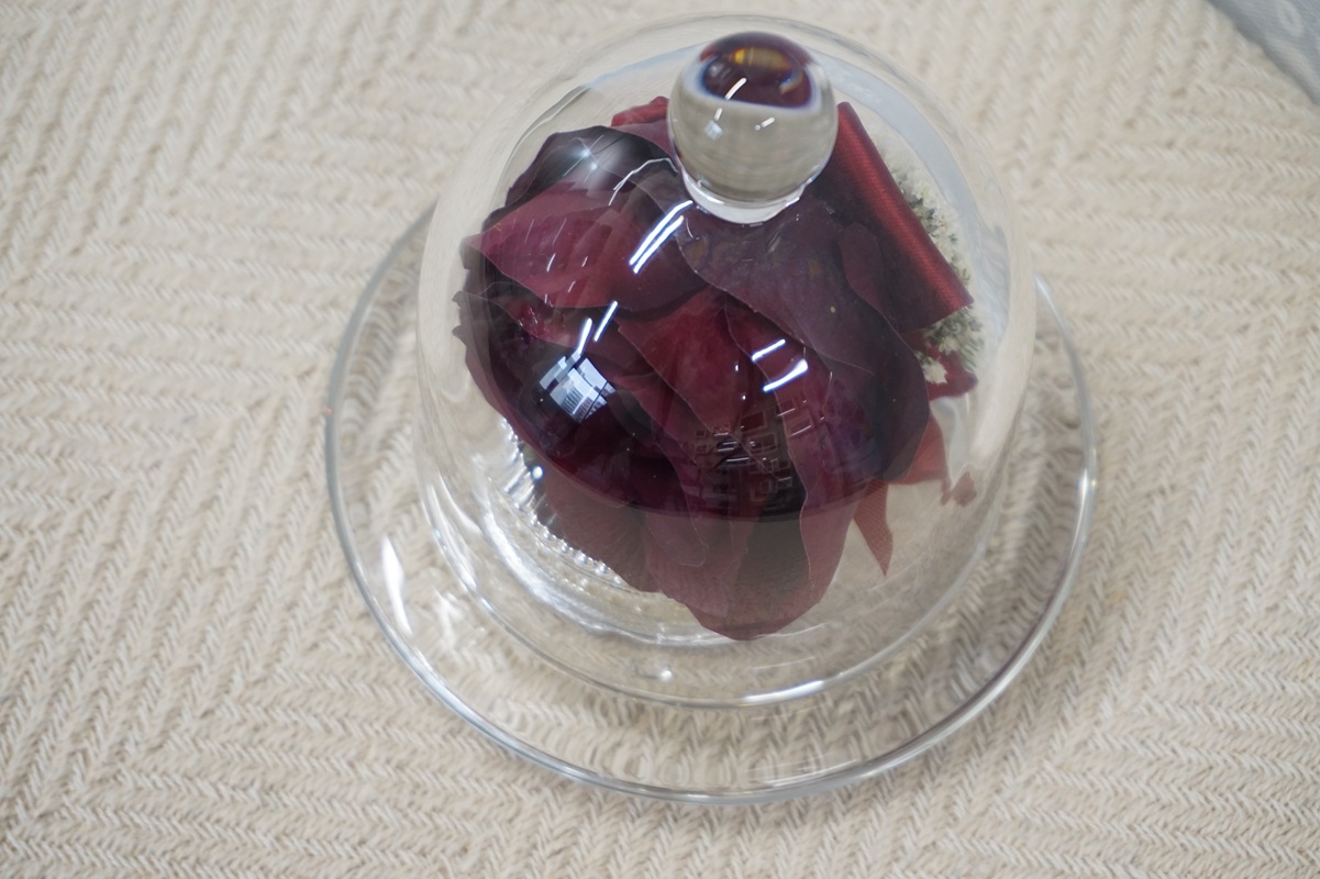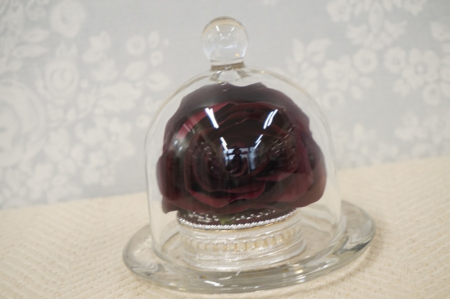 - ガラスフレームに入る花の数:高さ3.5~4㎝程のバラが1輪~2輪入ります。1輪の薔薇にする場合でも使用する薔薇の数は3~5輪必要です。きれいな花弁を選んで1輪を大輪にします。